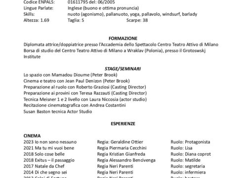 ERICA ZAMBELLI CV ATTRICE 2025